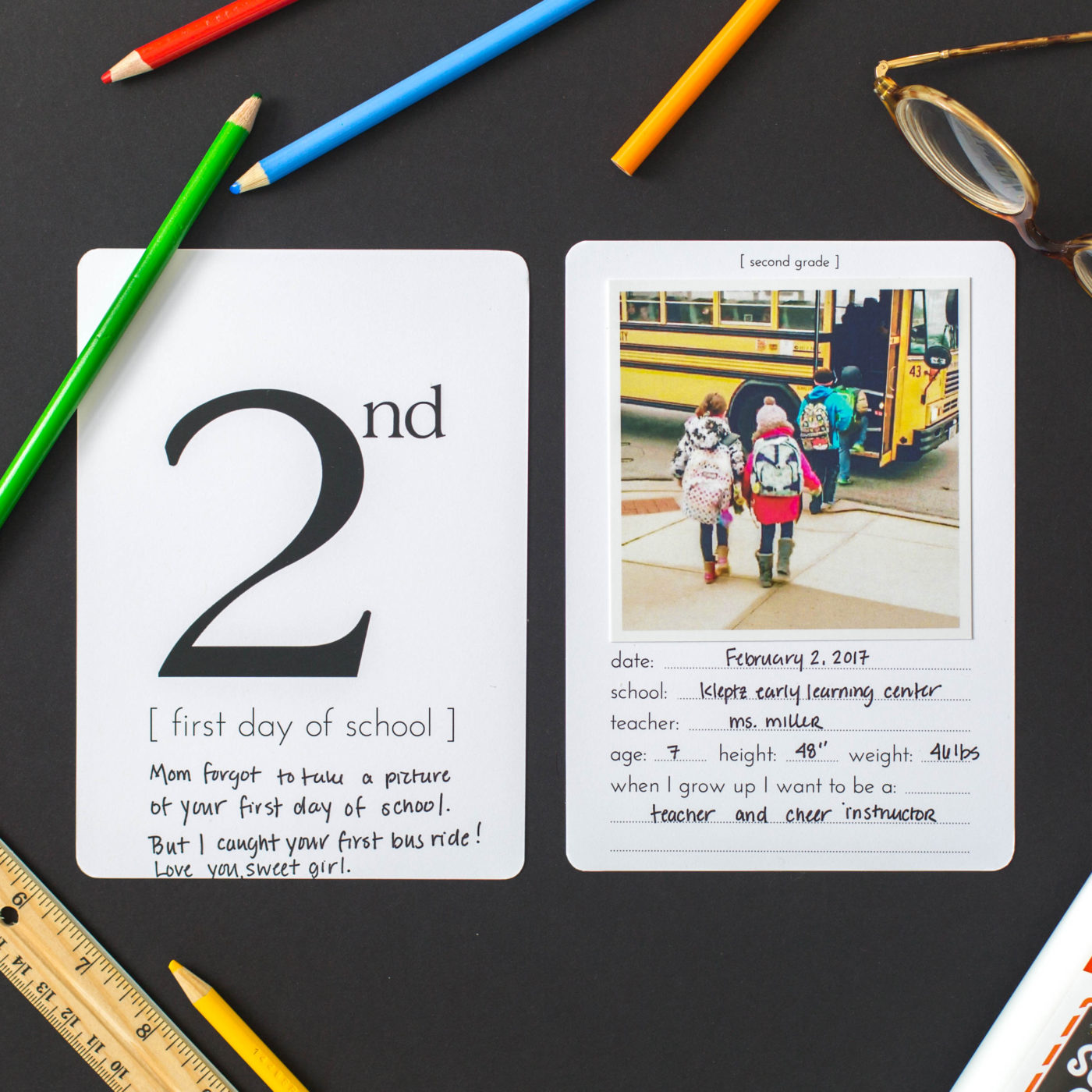 school years documents your child’s education by sharing pictures of the first and last day of school and school pictures from preschool to twelfth grade. record special memories and information from your child’s schooling like favorite subject, what your child wants to be when they grow up and visited colleges and universities.