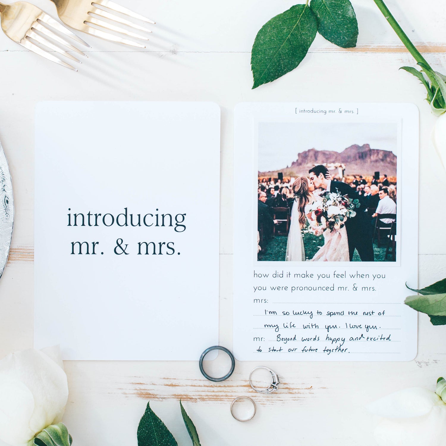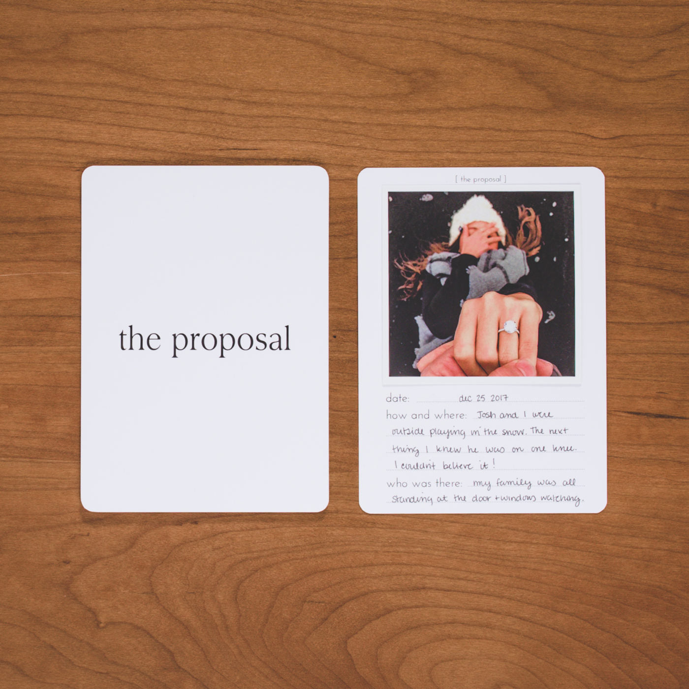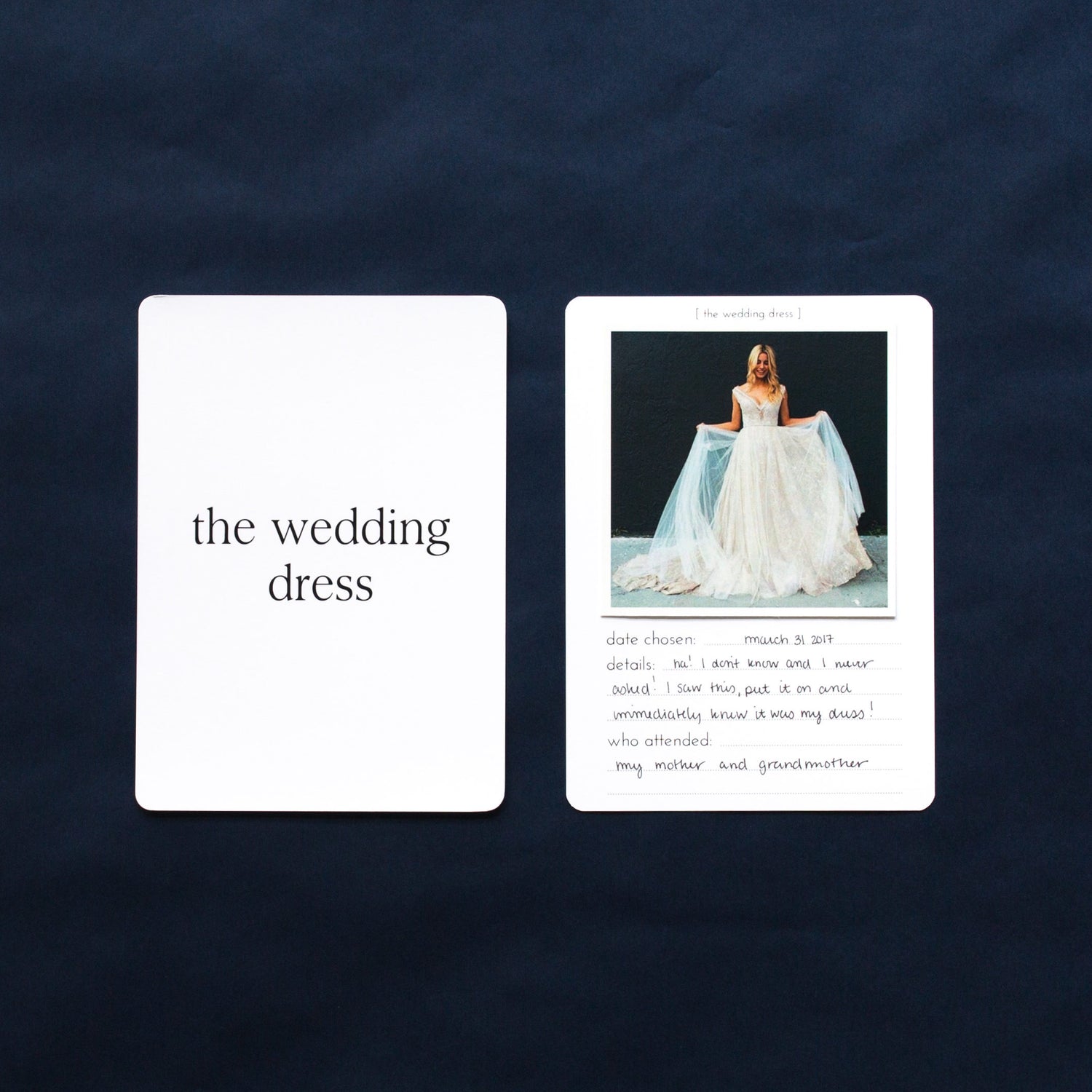 wedding documents the couple’s journey to becoming newlyweds from the proposal to the honeymoon and all the in-between. record special memories from the day the wedding dress was chosen, how you felt when you saw your wife walking down the aisle and what special wedding traditions were celebrated.